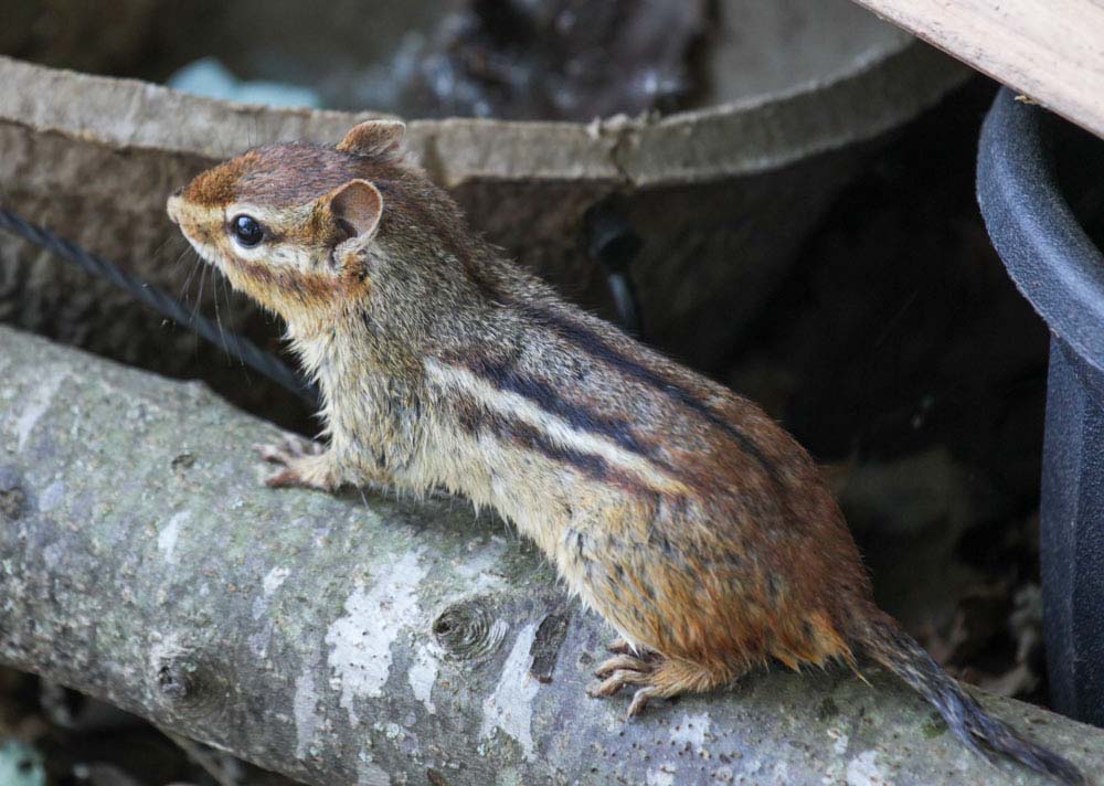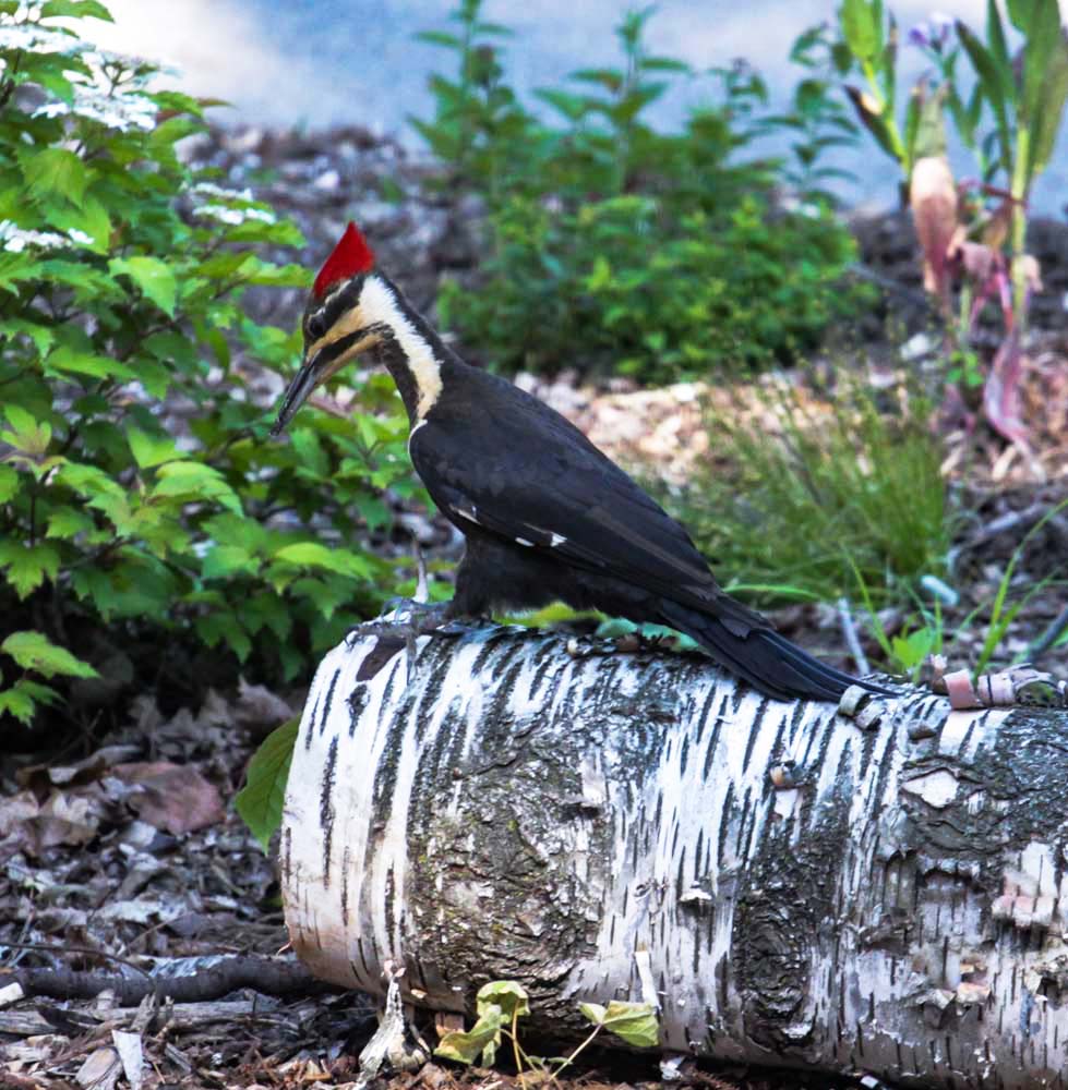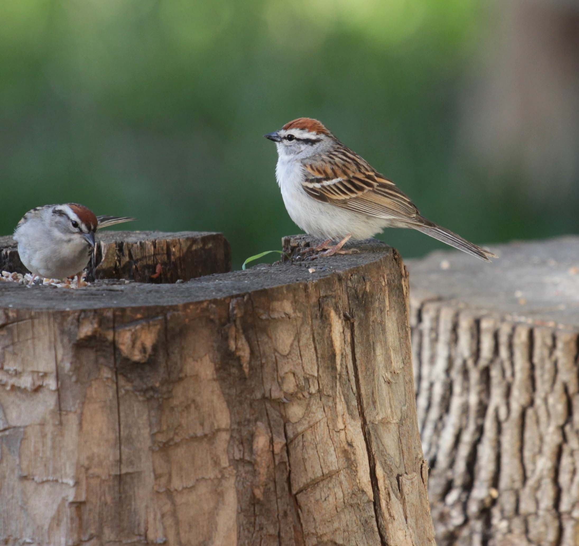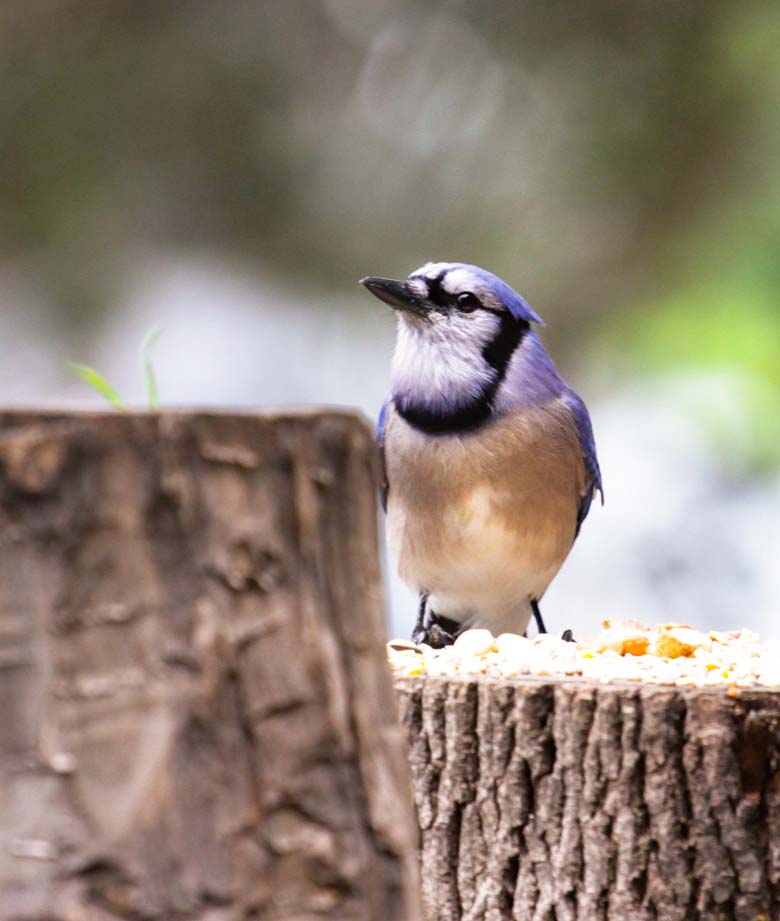 At that same time we started to feed birds. Our town has a law that you can't feed birds on the ground. You have to have an elevated feeder. And we got a complaint. So I made an elevated bird feeder with five logs stacked together.