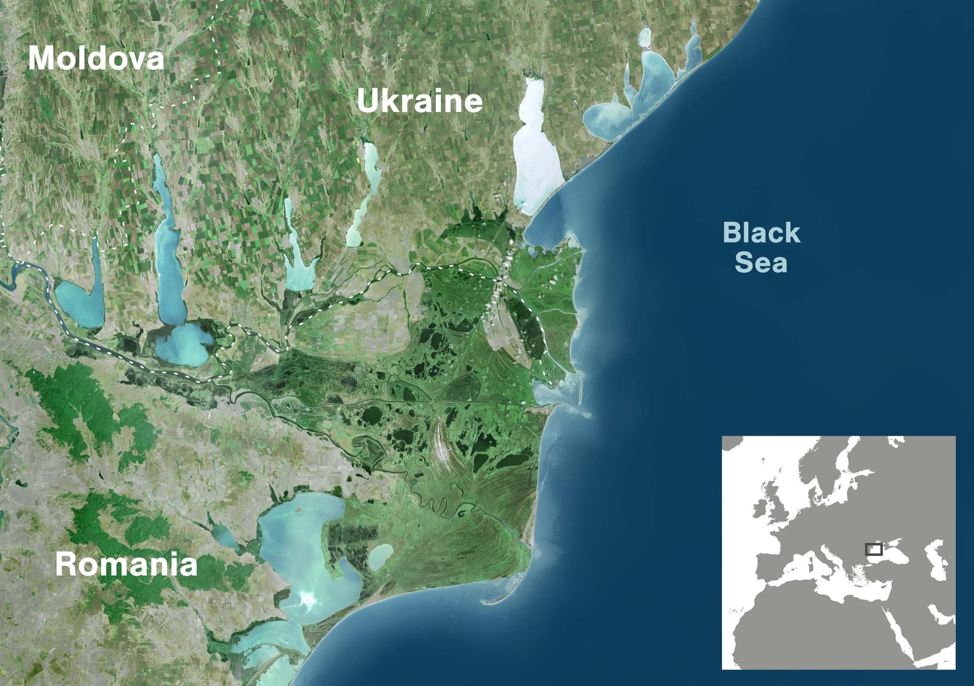 The delta is the terminus for one of Europe’s great rivers. Originating in the mountains of Germany’s Black Forest, the Danube flows through capital cities Vienna, Budapest and Belgrade before bisecting the Carpathian Mountains in Romania. From there it turns to the east, forming the border with Bulgaria. The river then bends to run parallel to the Black Sea before scattering into a vast network of riverlets, lakes, reed beds and mudflats, ultimately draining into the sea.