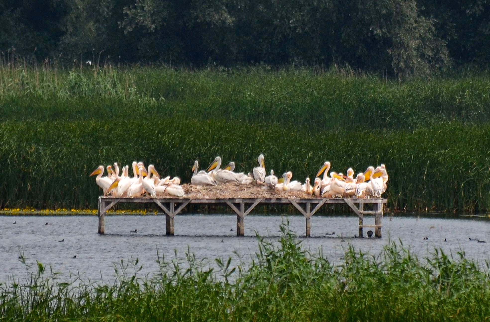 Because of Russia’s stated designs on the Black Sea coast, the area of the delta closest to the sea became a military exclusion zone, and it has remained so. This has proved particularly problematic for the Danube Biosphere Reserve (DBR), a Ukraine-established protected area nestled between the sea and the Romanian border. The DBR is one of Rewilding Ukraine’s key local partners; the two organizations have worked together on a range of projects. One of these was a 2021 collaboration to build floating platforms for Dalmatian pelicans, continuing a project begun by Rewilding Europe and other partners in 2019.