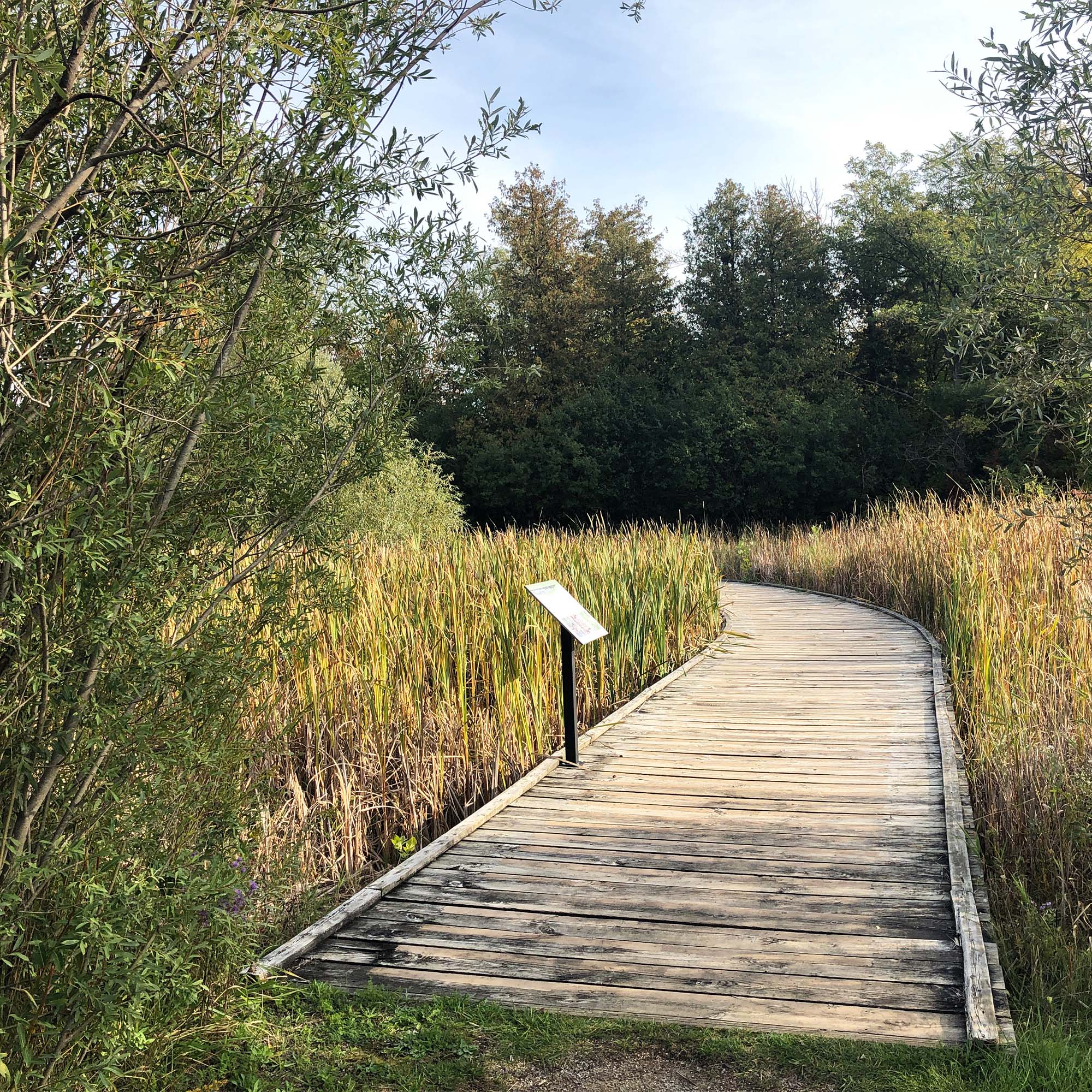 We end our tour on a wooden platform overlooking a small pond. On my previous visit, I had paused here to post a lily pad shot on my Instagram Stories. “My favourite place,” one friend replied immediately. This time, we all spot something swimming across, and Watson-Leung decides it’s a muskrat. Whitten explains the constant balancing act between all the different interests in this space: the human visitors, the animal residents, the native plant species looking for space to survive.