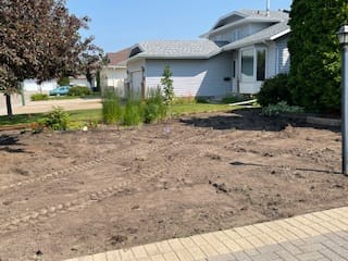 I had to mulch my front yard the first year as I couldn’t complete all the planting in one year. I learned that if you want the wildflowers to spread you must pull back the mulch and expose the soil. Let the seeds fall where they may. I use a system of colour, blooming time and height so there is always nectar for the butterflies from spring to fall. In the spring it is purple columbine, yellow alexandria, Heuchera (coral bells), Heuchera (pale yellow), trumpet vine (orange), prairie coneflower (yellow), bergamot (pink), anise hyssop (blue), non-native Echinacea, blanket flower, showy milkweed, swamp milkweed (pink) and goldenrod (yellow) for migrating butterflies in the fall.