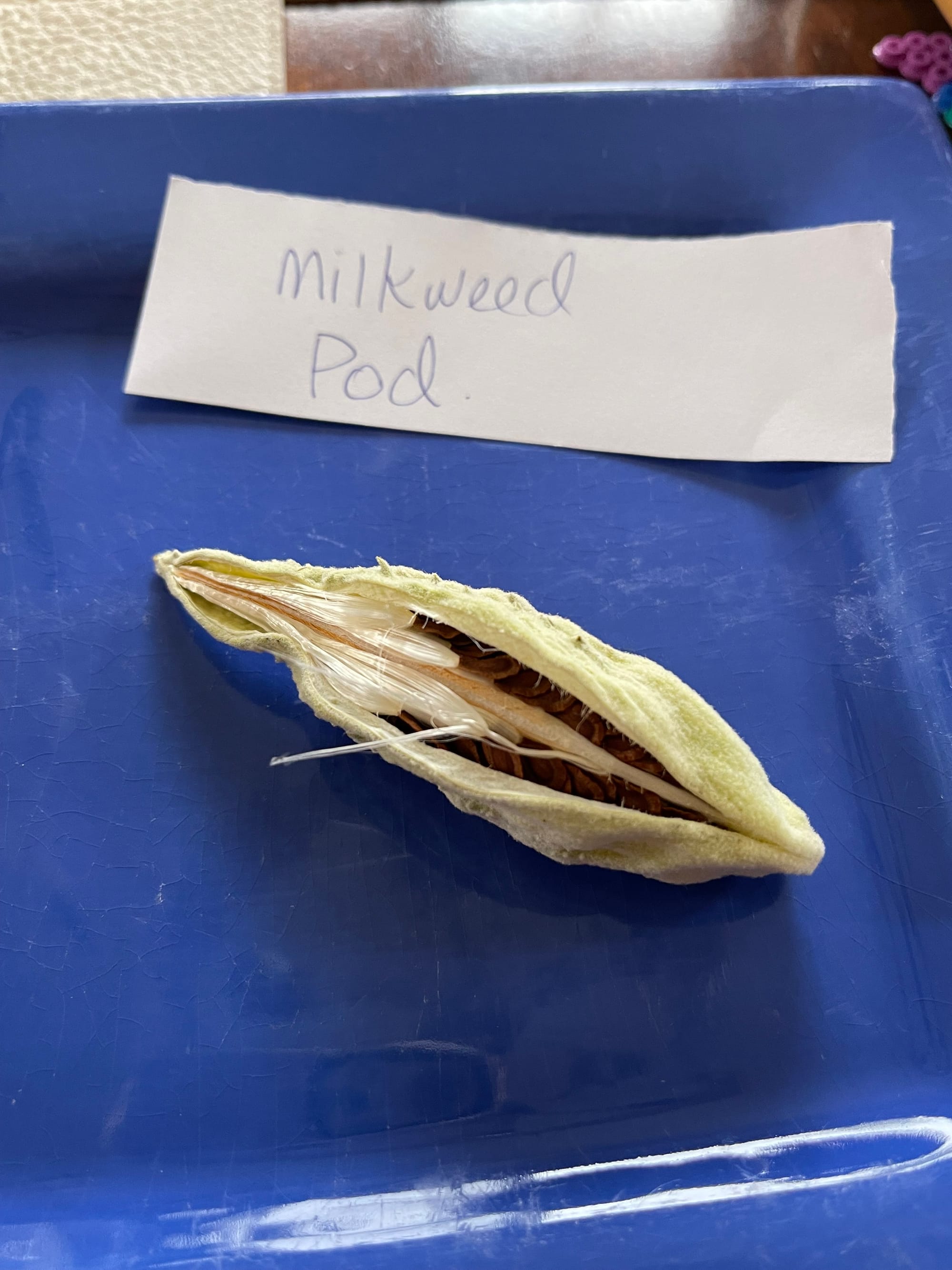 Clockwise from top left: A milkweed pod opening; Milkweed seeds emerging from their pod; Swamp milkweed in blossom; Showy milkweed in blossom. Photos: Karen Hunter.