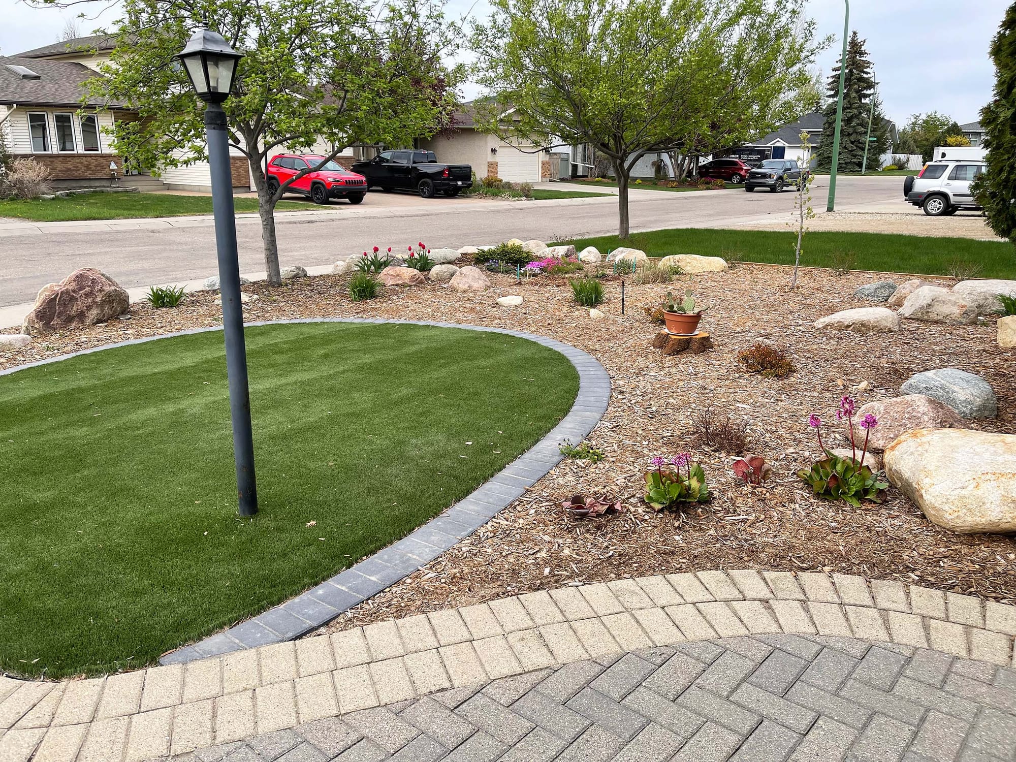 My green lawn in my front yard has been replaced with boulders and native plants such as ferns, milkweed, Liatris, Heuchera and columbine and native prairie seeds such as fleabane, asters and prairie yellow coneflower. I have not been successful growing purple prairie clover, blanket flower or Echinacea. My composting husband has made the soil too rich for these plants.
