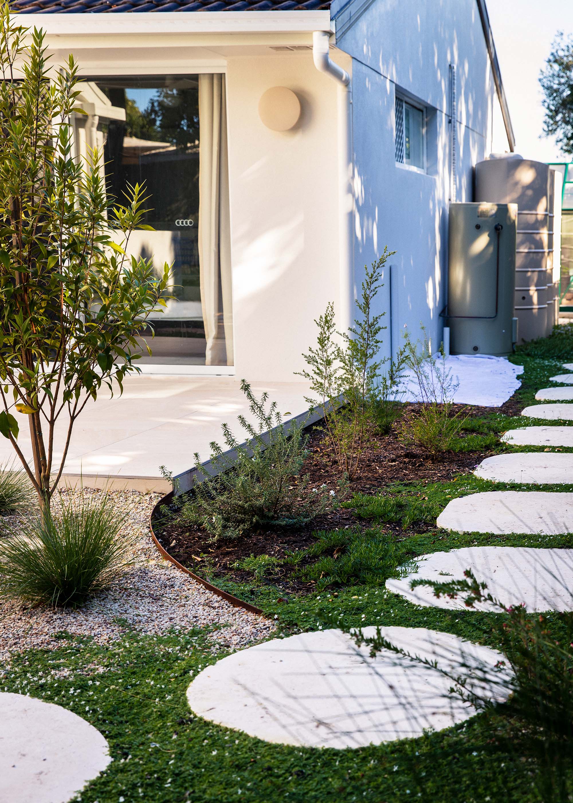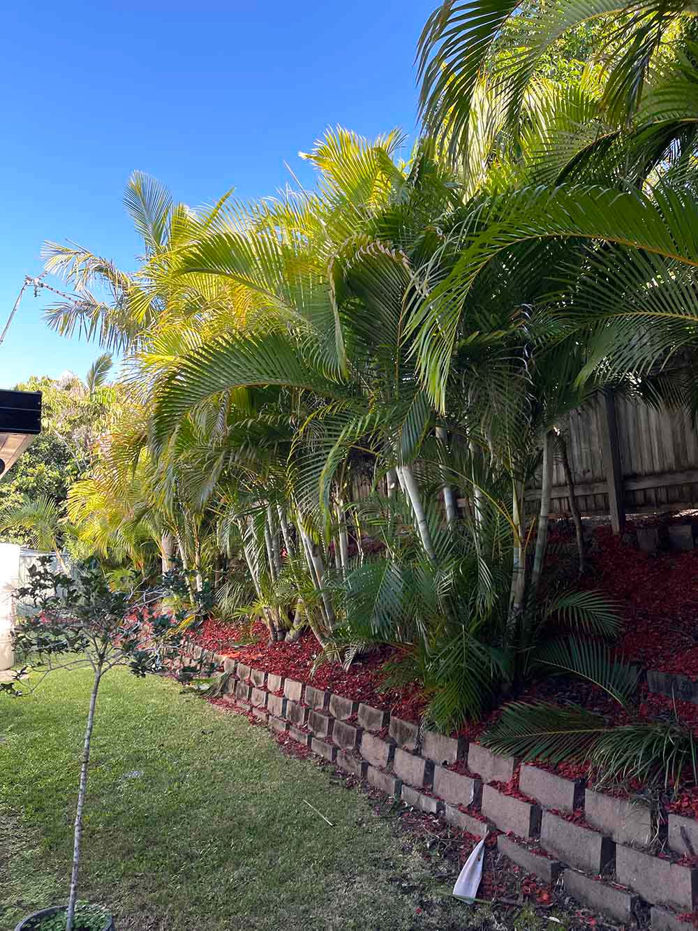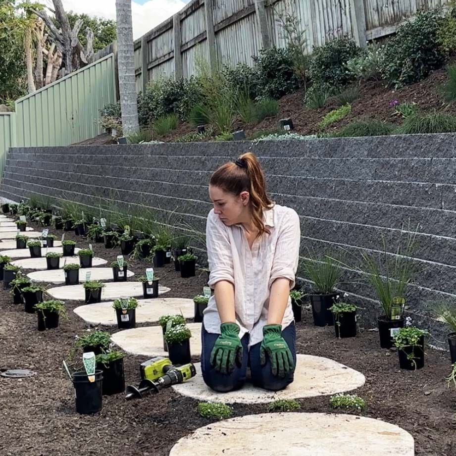 We didn’t set out thinking we’d do all this all ourselves. Early on, I contacted a landscape designer to help shape the plan. But when they recommended glyphosate to kill the palm stumps, I knew we weren’t on the same page. By that point, I’d already begun the research and figured we could give this a go. Our renovation budget had to stretch, and except for the retaining wall and limestone steppers, we’ve done everything ourselves. It’s been a lot of hard work, some blood, a lot of sweat, and the occasional tears.