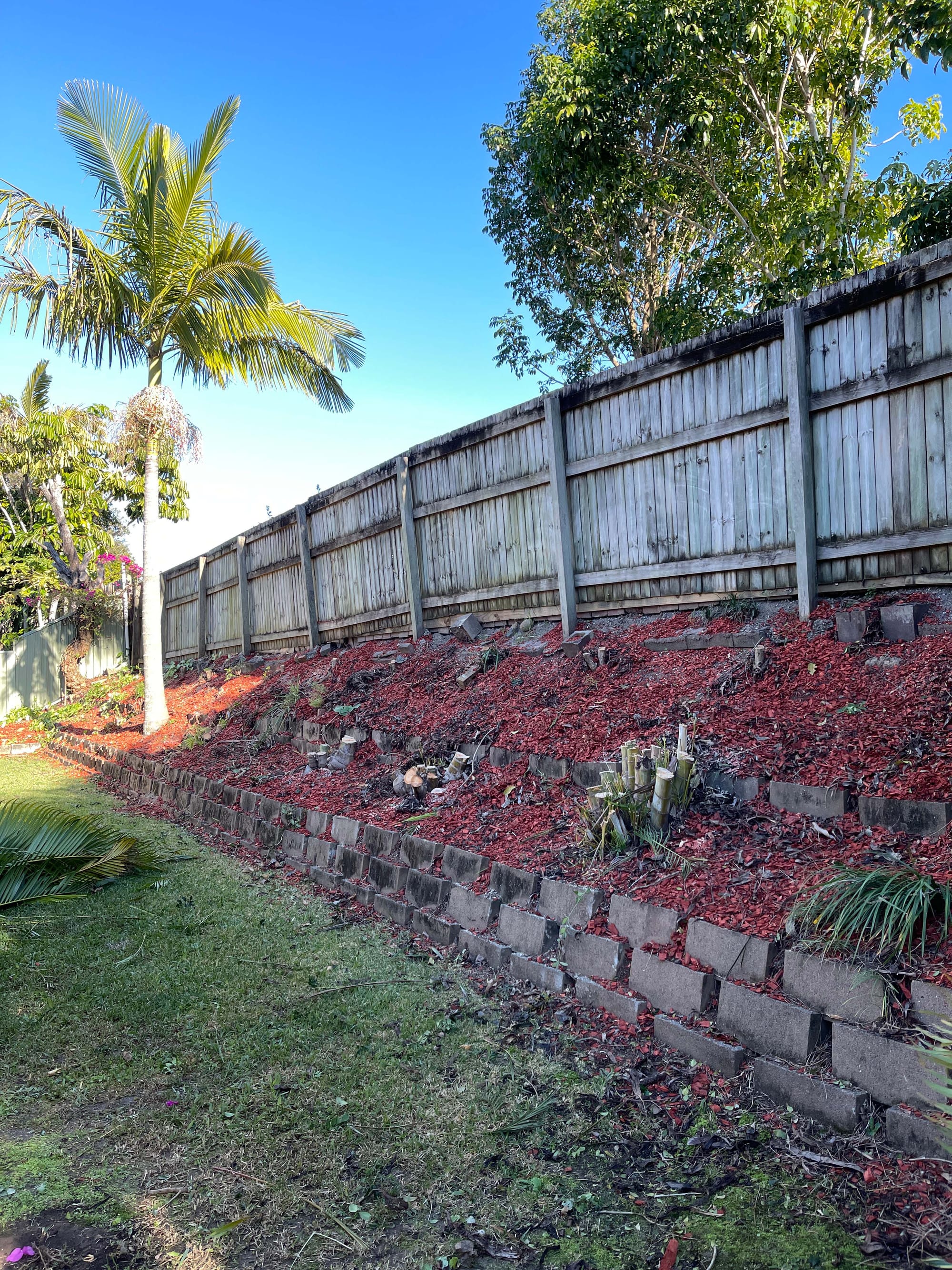 It turned out to be the most physically brutal project. We carted a cubic metre of soil and another of sandstone up our steep driveway in stifling humidity. That job nearly broke us.
