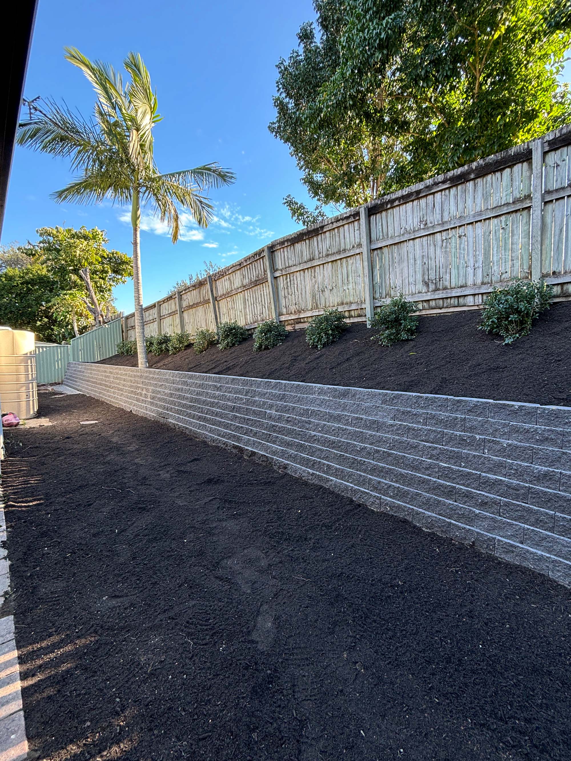 We started with what had to come first. Drainage. Runoff from the house above meant flooding was a problem, so we brought in help to install proper drainage and build a new retaining wall.