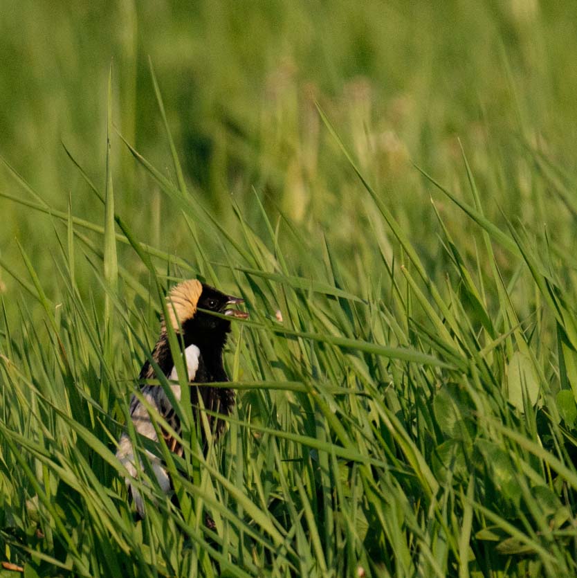 Hobbs and I arrived at the open grassland after a few hours of walking through swampy forests where silver maple thrives – a species with roots able to withstand the water’s rise and fall. He quickly spotted a bobolink calling loudly, perched in the tall grass. In August 2022, more than 150 of these yellow-naped flyers gathered on Île du Mitan just before their migration – a crucial pit stop on a journey that takes them 10,000 kilometres away to South American plains. These reinstated prairies have been designed to become home to species classified as vulnerable or threatened in the province, including the Nelson’s sparrow and sedge wren. The bobolink, whose population had declined between 1970 and 2017, has already started nesting here.
