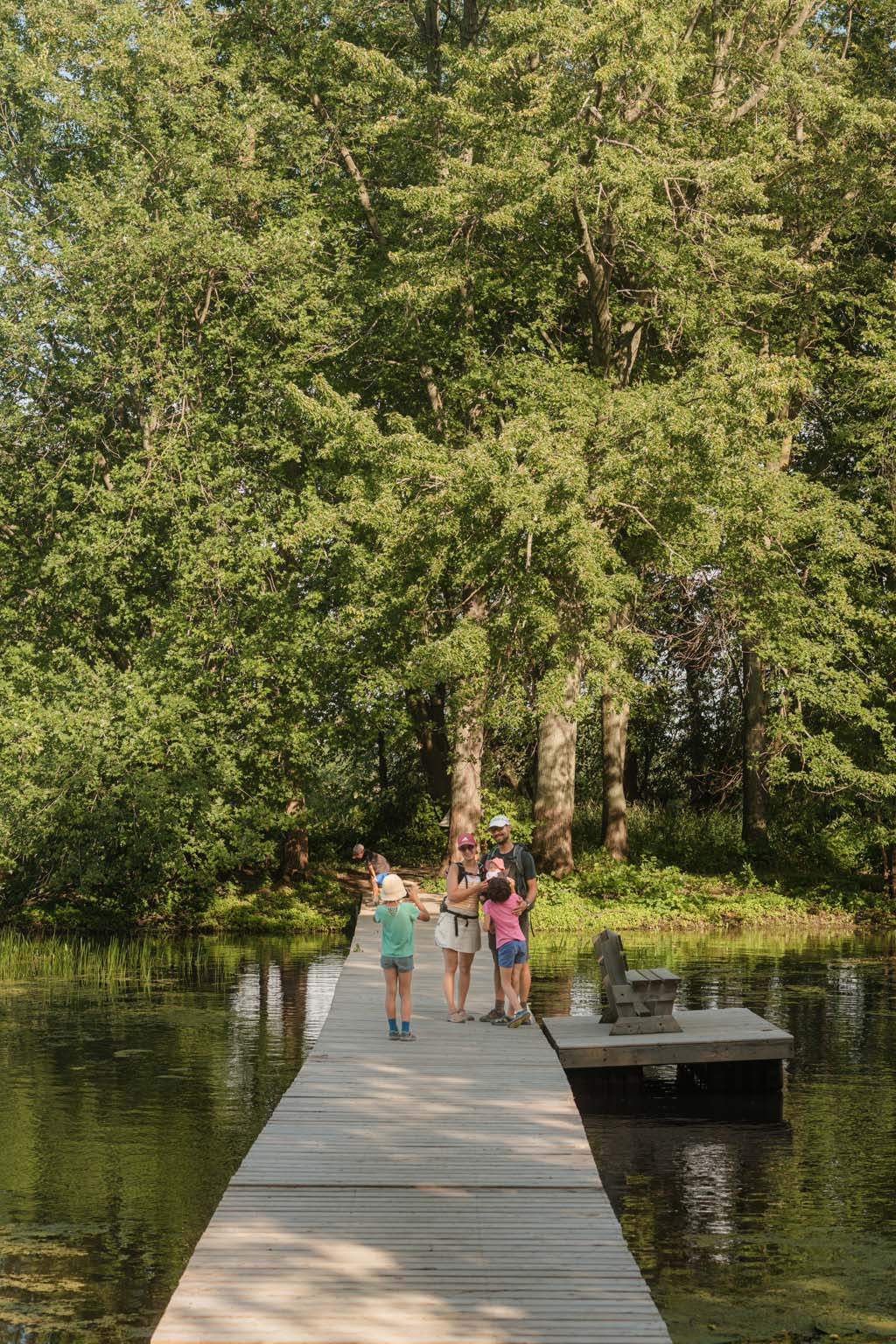I was accompanied by a photographer friend, Alexi Hobbs, a fervent birder and the one who had told me about this place – part conservation project, part park – owned and helmed by the Société de conservation, d'interprétation et de recherche de Berthier et ses îles (Scirbi). The property, open to the public since 1986, is made up of two side-by-side islands – Île aux Castors and Île du Mitan – separated by a large swamp. The two land masses are joined by small bridges that bounce off the water’s surface under the steps of visitors.