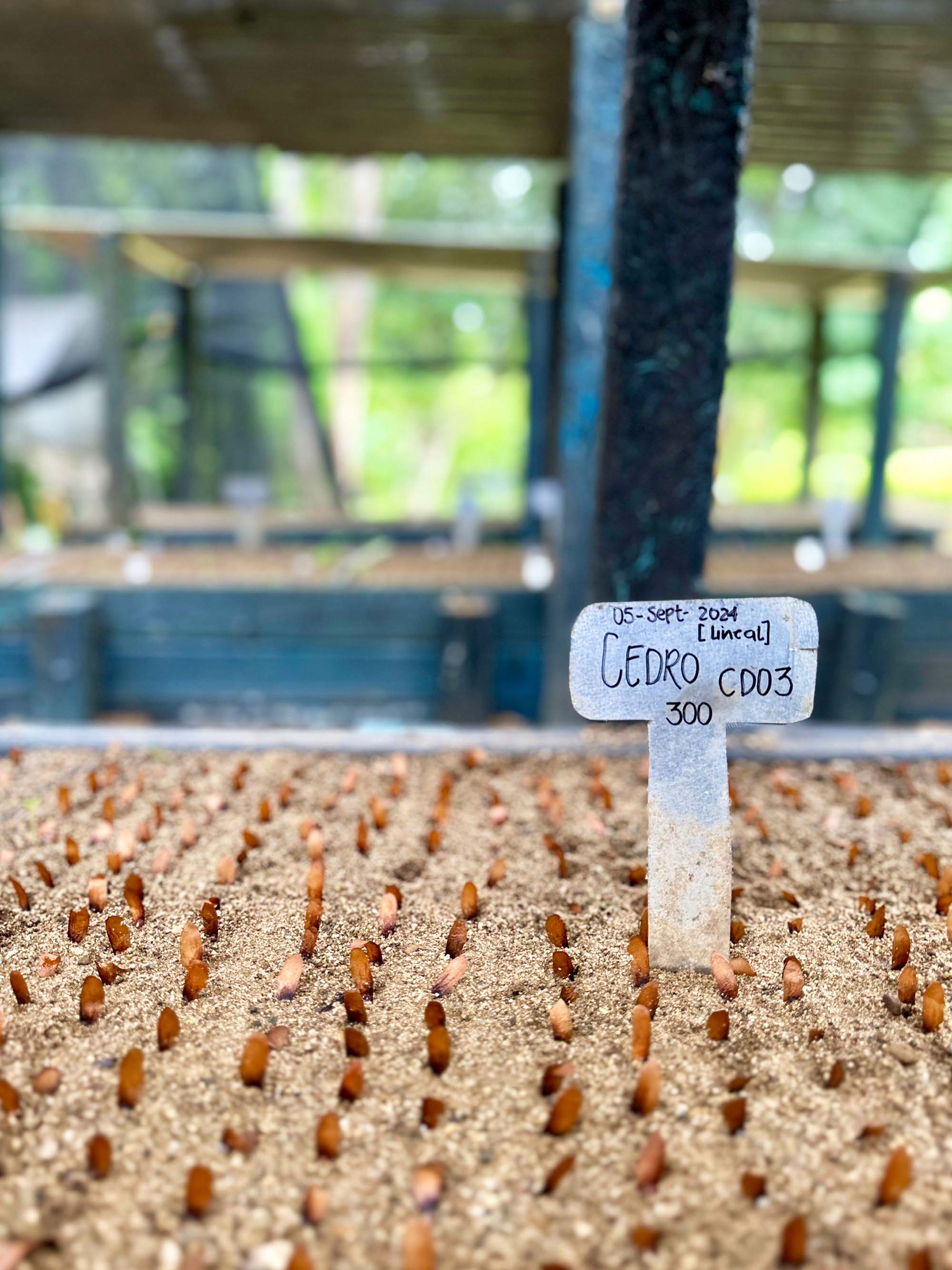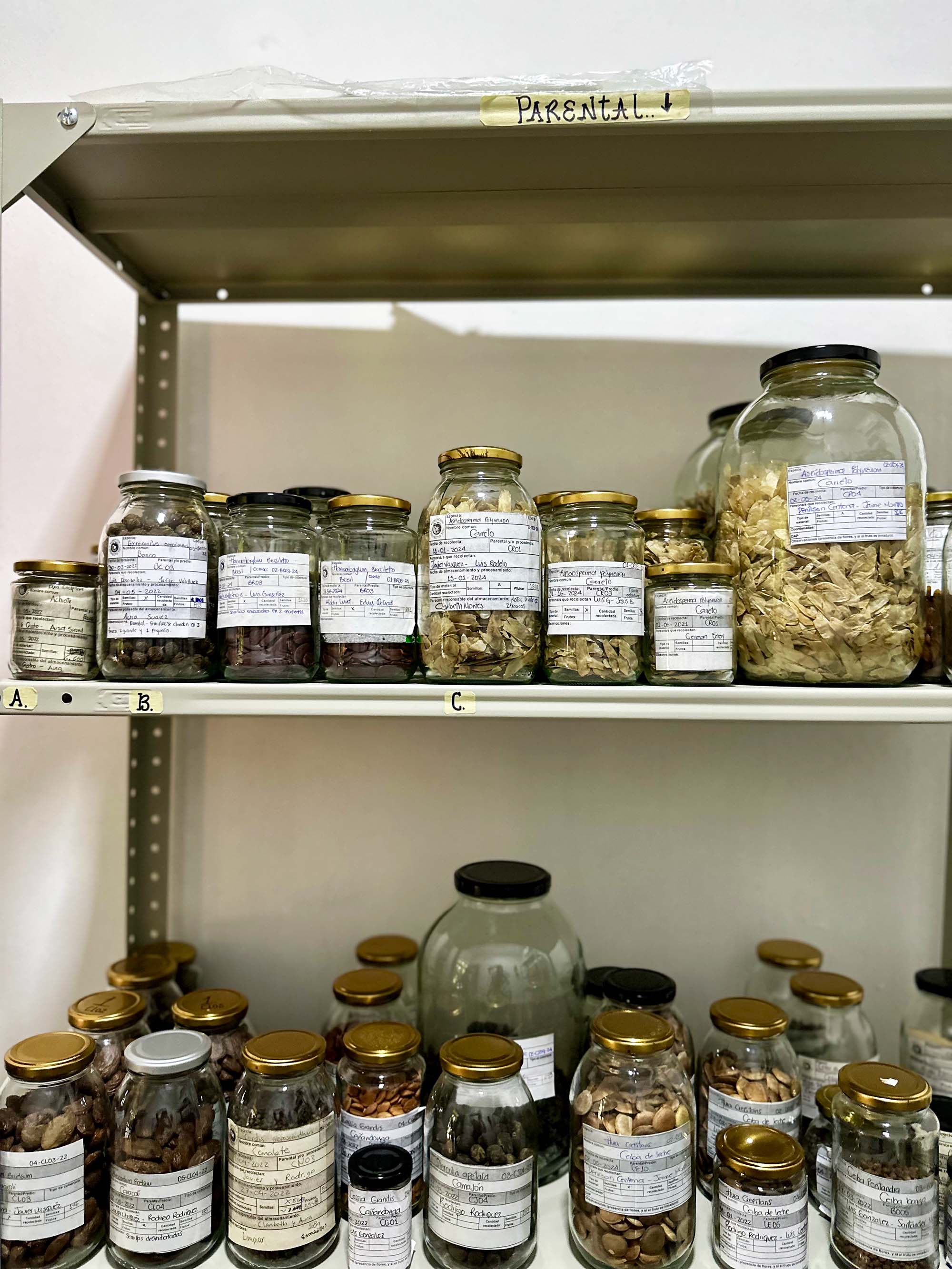 We moved on to the nursery, the heart of the operation, where rows of native saplings awaited planting in the wild. In a room lined with jars of seeds brimming with forest potential, Reyes described how Proyecto Tití collects and propagates seeds from more than 70 species for reforestation, to create a balanced and diverse habitat.