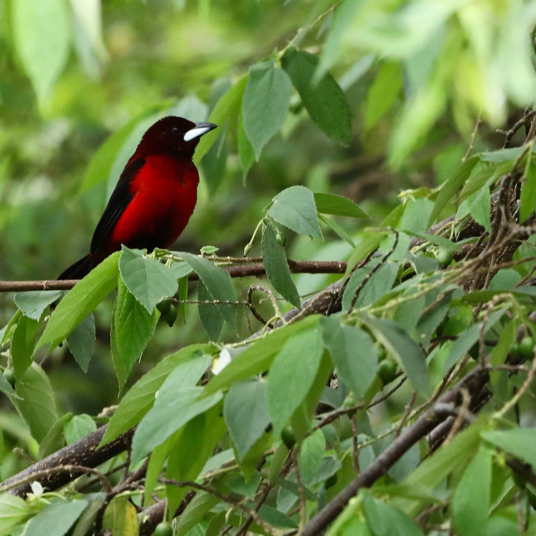 From left: A black-crested antshrike; a ceiba de leche trunk; a crimson-backed tanager. Photos: Jenn Smith Nelson.
