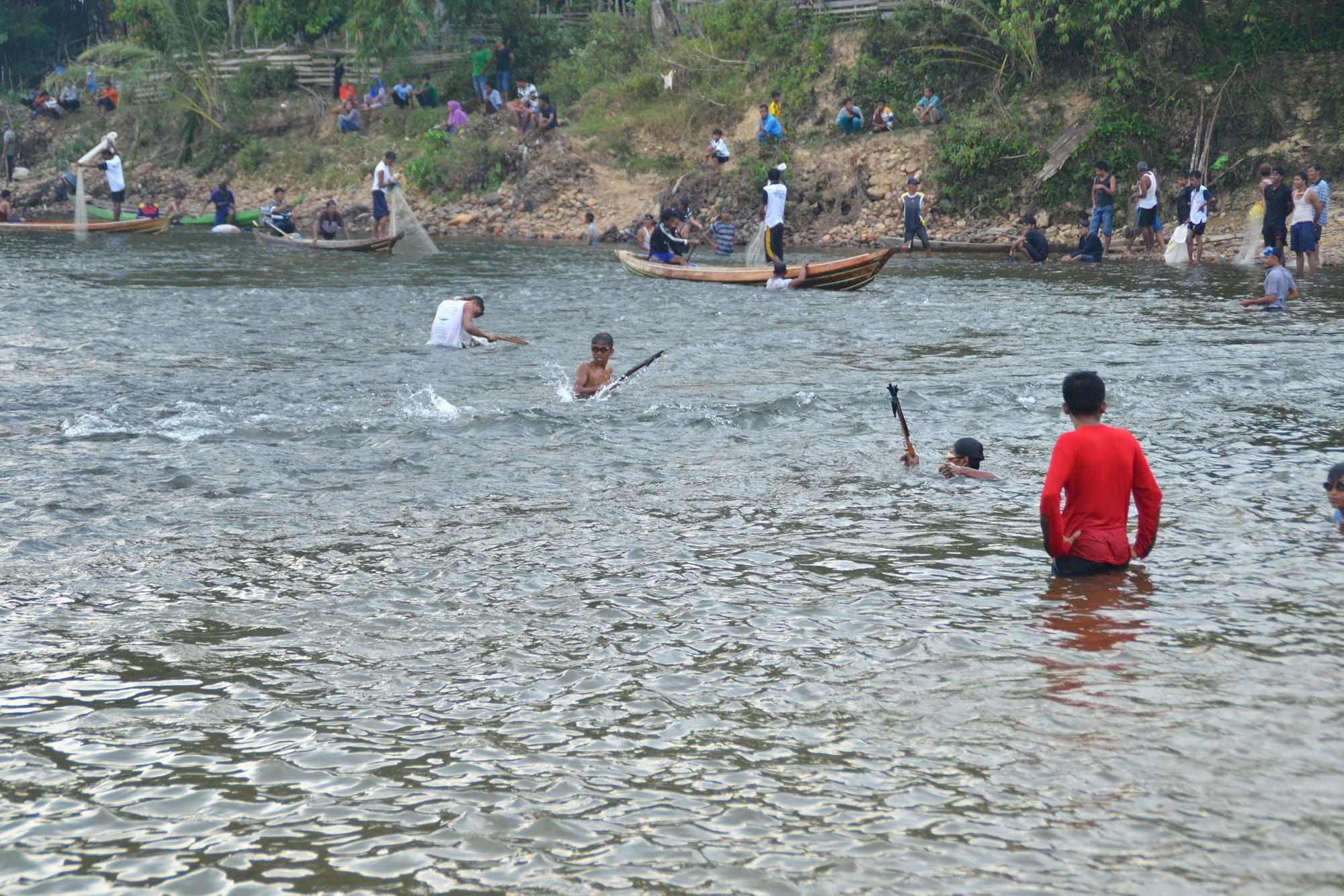Every villager becomes a guardian, watching the pools throughout the year, ensuring the prohibition holds. The system works because it transforms individual restraint into collective identity, reinforced by both adat law and communal belief. In the Subayang River, those who violate the lubuk larangan by fishing outside the agreed harvest season face sanctions decided by the ninik mamak and the community. A common penalty is a fine, such as providing a sack of cement for communal use, alongside other forms of customary restitution.