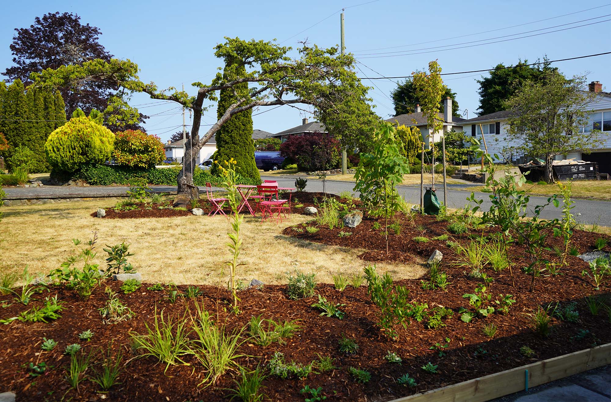 Timing matters, too. When you’re finally ready to sow new life into your former lawn, Jenkins recommends doing so in late summer, early to mid August in Canada. Conventionally, people assume they should plant in the spring, but that requires daily watering for months. By late summer, though, watering might not be necessary at all – there’s often enough morning dew to keep seeds moist for germination. In other words, sow at a time that your seeds or seedlings will grow most naturally, instead of trying to force things. “My big philosophy is simple: I cannot improve nature,” Jenkins says. “I can only copy it.”